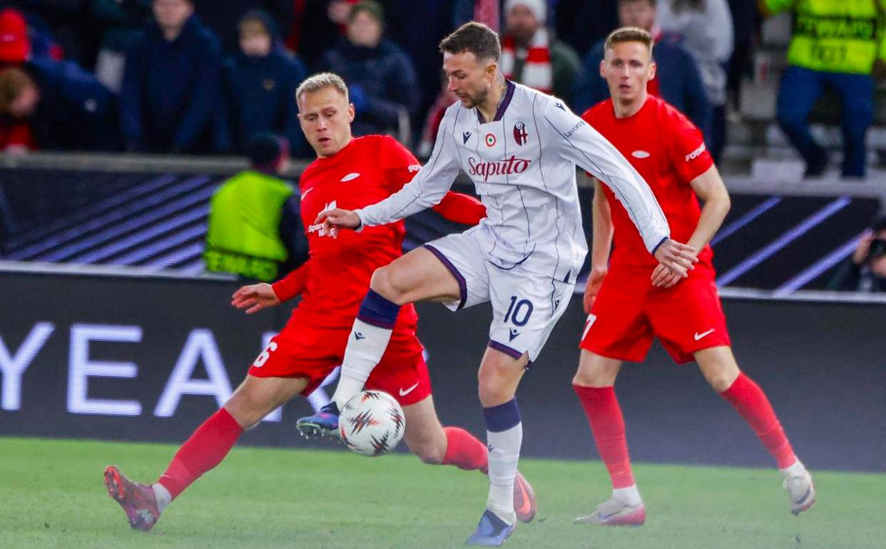 比赛开始仅9分钟,博洛尼亚由坎比亚吉完成精彩助攻,21岁的阿根廷新星圣地亚哥·卡斯特罗抓住机会,一击致命,帮助球队率先破门,取得领先。尽管博洛尼亚控球率仅为35%,角球次数也少于布兰,但他们的射门和射正次数均高于对手,展现出更高的效率和攻击威胁。最终,博洛尼亚凭借这粒进球守住胜果,客场1-0小胜布兰,获得晋级的宝贵先机。